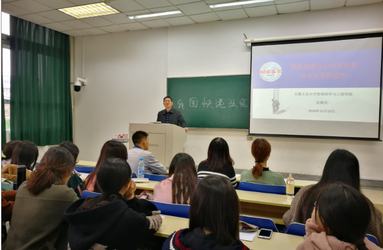 讲座在同学们热烈的掌声中结束。通过岳朝龙教授的讲解,同学们对我国快递业发展现状及趋势有了更深层次的了解,并引发了他们对自己未来就业发展的思考。