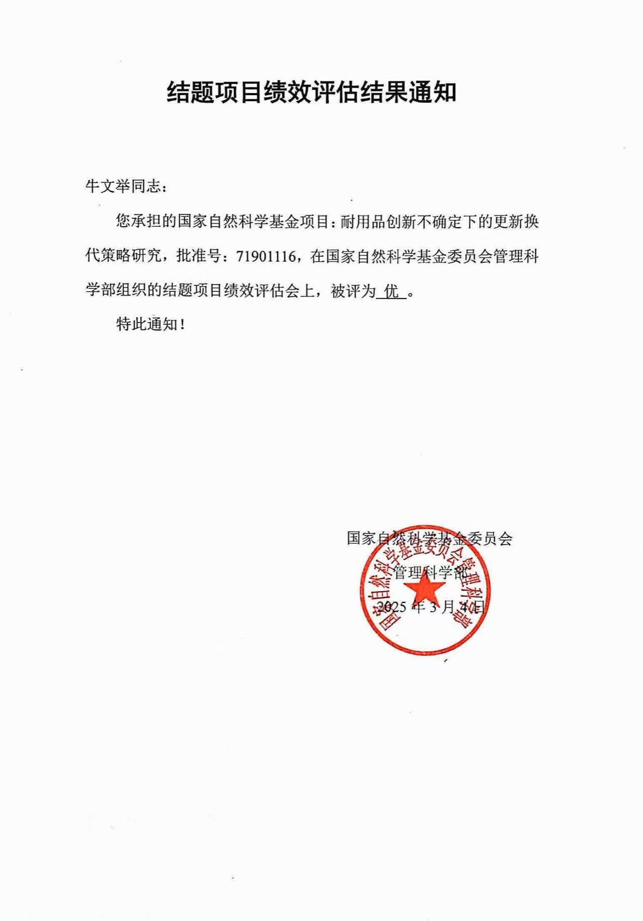 我院牛文举、王晔两位老师在国家自然科学基金委员会管理科学部组织的结题项目评估,被评为“优秀”。