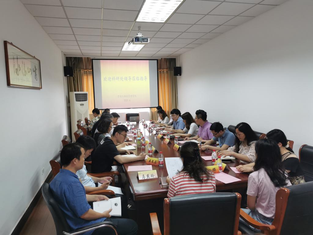 我院党委书记黄建国首先对科研处一行的到来表示欢迎,接着陶经辉副院长(主持工作)就我院的科研工作进展、相关举措及规划进行了介绍。他表示,我院的科研工作一直秉承以学校科研政策、文件为指导,严格落实校科研管理会议精神和要求,促落实,抓实效,并对科研处在日常工作中给予我院的大力支持表示感谢。李杏处长对我院科研工作取得的发展和成效给予了充分的肯定,她表示,此次前往我院开展科研工作调研交流会,一方面是结合党史学习教育活动,落实“我为群众办实事”的相关要求,另一方面也利用这个机会,听取青年教师们的心声,了解教师们对科研服务的要求,切实地为学校科研工作做好服务。