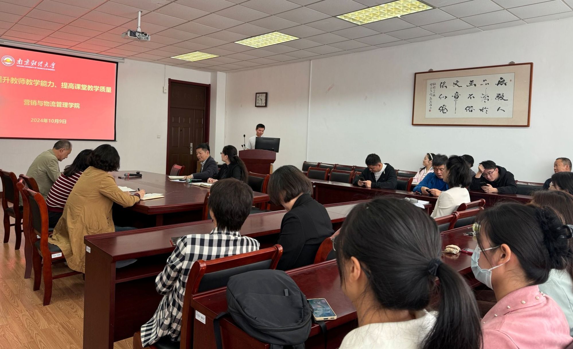 本次培训由江苏省“青蓝工程”优秀骨干教师、首届校“青年五四奖章”获得者、物理管理系副教授牛文举老师主讲。他以“物流与供应链管理中的双重边际效应”这一经典案例为例,从“3 why”的方法角度阐述了如何引导学生发现问题、思考问题以及解决问题,并重点对如何进行课程教学设计、学习效果评价与反馈等方面与在座的教师进行了探讨与思考。