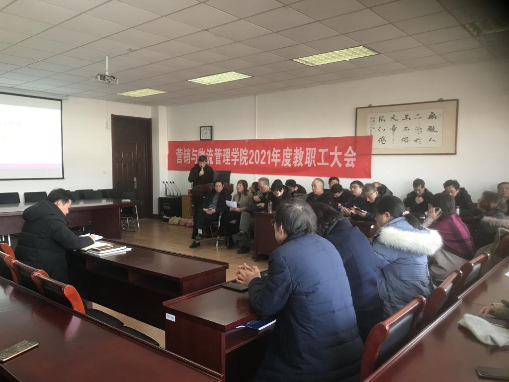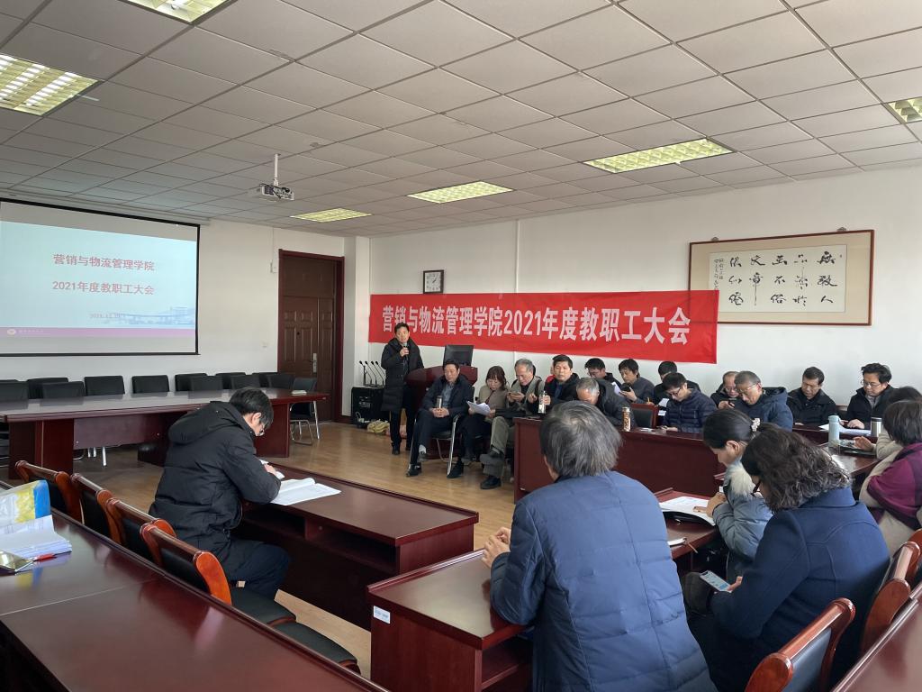 首先,陶经辉副院长(主持工作)作了2021年度工作报告,从党建工作、教学工作、学科建设、人才培养、师资队伍建设、科研与社会服务工作等方面总结了取得的成绩,分析了学院当前面临的挑战和机遇,并对2022年度工作进行了部署。希望新的一年“群策群力谋发展,齐心协力干事业”,激发营管人的活力,为学院建设做贡献。