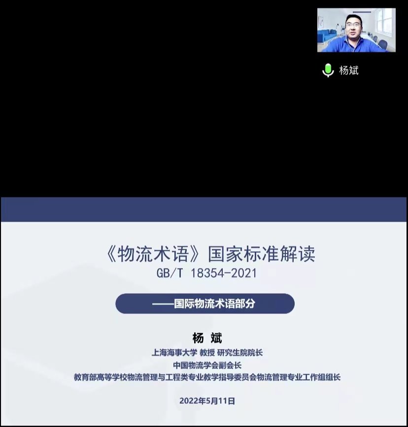 5月12号下午,应bevitor伟德国际1946邀请,中国物流学会副会长、教育部物流管理与工程教学指导委员会物流管理工作组组长、上海海事大学研究生院院长杨斌教授以《物流术语-国家标准解读》为题作线上讲座。讲座由bevitor伟德国际1946物流管理系系主任范建昌主持,bevitor伟德国际1946院长陶经辉教授和部分师生参加讲座。