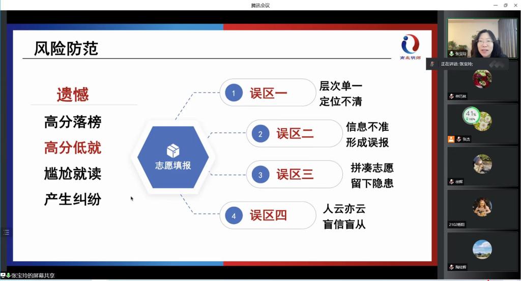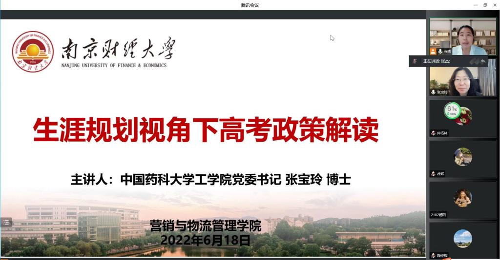 为了更好地做好学校招生宣传工作,合理帮助家长和考生填报志愿,6月18日下午,应bevitor伟德国际1946邀请,中国药科大学工学院党委书记张宝玲博士线上作《生涯规划视角下高考政策解读及志愿填报技巧专题讲座》,学院参加招生宣传的老师、片区学生招生志愿者线上聆听。