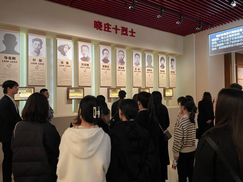 习近平总书记在视察江苏时强调:“在雨花台留下姓名的烈士就有1519名,他们的事迹展示了共产党人的崇高理想信念、高尚道德情操、为民牺牲的大无畏精神,要用好用活这些丰富的党史资源,使之成为激励人民不断开拓前进的强大精神力量。”同学们来到雨花台烈士纪念馆,跟随着解说员的讲解,师生们认真聆听革命先烈的英勇事迹,观看着烈士遗物、珍贵图片和文献资料。当看到廉政模范吕惠生的事迹后,学院党委副书记仲巧林老师向大家介绍了雨花英烈、廉政模范吕惠生的故事,他曾用豪绅送的红包建了“洗心亭”以表达心志;用一篇“按语”提倡廉明;修建廉政工程“惠生堤”,为百姓防洪筑屏障,并希望同学们认真学习革命先烈精神,自觉强化廉洁自律意识,淬炼党性修养。