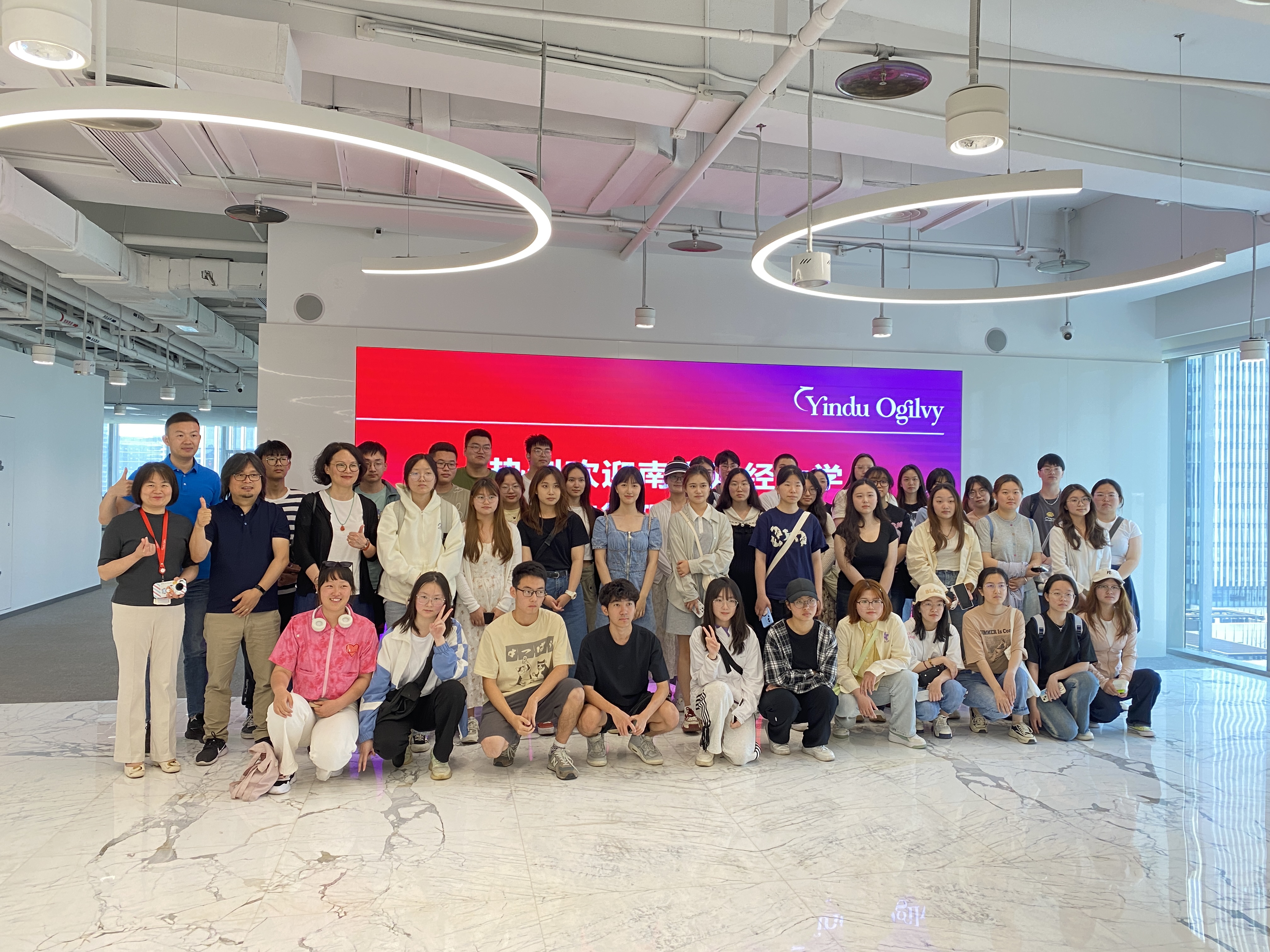 为了巩固学生专业思想,强化专业实践能力,5月18和5月24日上午,广告2301班、广告2302班全体同学及我院企业管理方向部分研究生前往南京银都奥美广告公司进行调研学习。