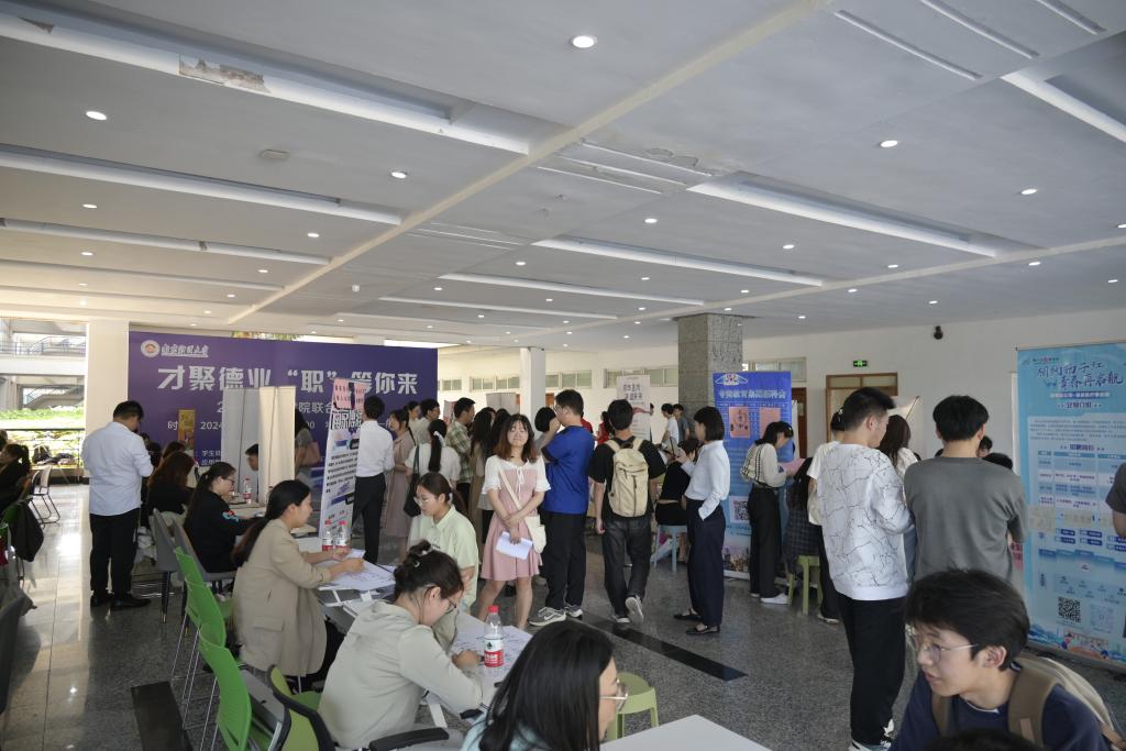 为抢抓毕业季促就业工作关键期,为用人单位与毕业生提供双向选择机会,促进毕业生顺利就业,5月10日下午,由我校大学生就业与创业指导中心指导,应用数学学院、bevitor伟德国际1946、信息工程学院、新闻学院联合主办的“才聚德业,‘职’等你来”专场招聘会在仙林校区德业楼一楼举办。相关学院党政领导深入招聘会现场,与参会企业代表深入交流,了解单位用人需求。学院辅导员到场指导学生参加双选。我校2024届毕业生参加招聘会,部分低年级学生到场观摩。