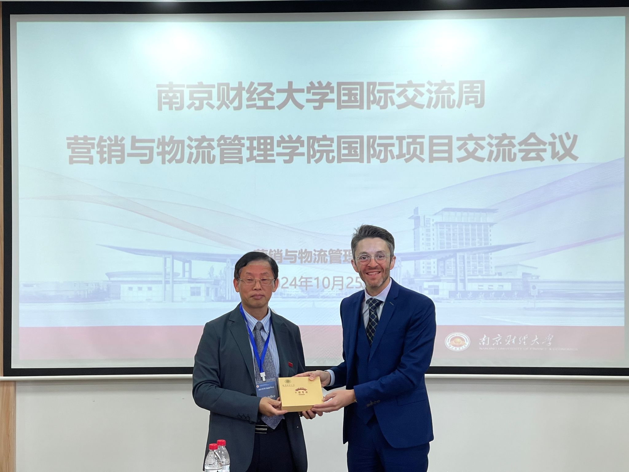 校党委常委、副校长黄步龙与法国高等对外贸易学院常务副校长Guillaume FERRANTE合影