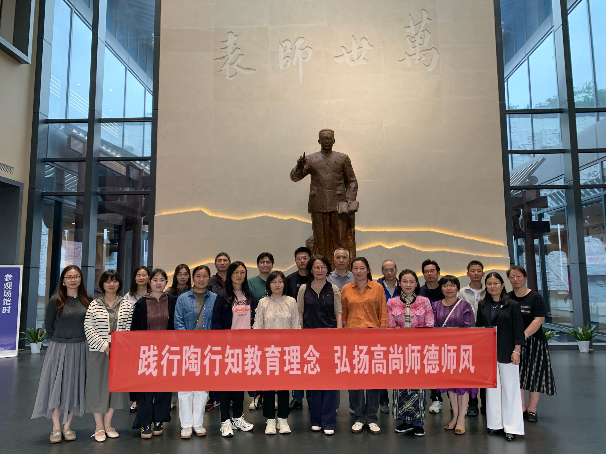 在讲解员生动细致的讲解中,大家依次参观了“理想信念”“道德情操”“扎实学识”“仁爱之心”四个主题展厅。一张张承载历史记忆的照片,一件件见证教育历程的展品,引领大家沉浸在丰富的教育史料和生动的场景里,真切感受陶行知先生为教育呕心沥血、艰辛付出的一生,深刻领悟“千教万教,教人求真;千学万学,学做真人”的教育理念,以及“捧着一颗心来,不带半根草去”的无私奉献精神。