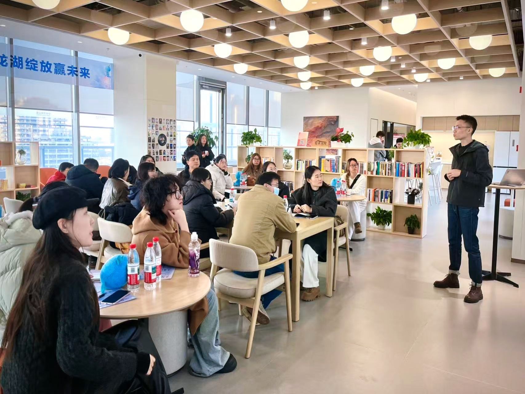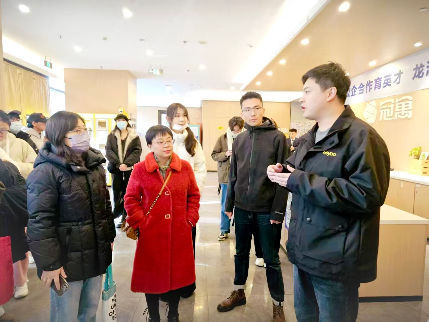 活动前期,在龙湖冠寓团队的带领下,学院师生先后前往南京麒麟科创园店与南京小米青年公寓进行实地参观。过程中,程娟店长详细介绍了冠寓的空间运营模式、服务体系及品牌理念,从智能化居住设施到社群文化建设,全方位展示了企业在青年居住领域的创新实践,让师生们直观感受行业前沿动态与企业运营实景,为后续校企合作奠定实践认知基础。