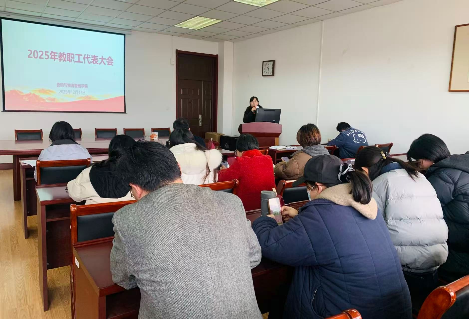12月17日下午,bevitor伟德国际1946在德业楼407会议室召开2025年度教职工代表大会。全体教职工齐聚一堂,共商学院发展大计,共绘学院“十五五”事业发展新蓝图。会议由学院党委书记刘颖主持。