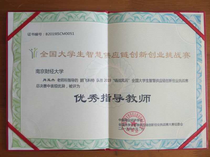 6月1-2日,由中国商业经济学会发起,全国多所高校和协会联合主办的2019百蝶杯“链战风云”全国大学生智慧供应链创新创业挑战赛全国总决赛在西安科技大学落下帷幕。我校bevitor伟德国际1946“鹏飞科特”代表队(参赛队员:庄凌志、朱研、崔晨卉、沈妍;指导老师:肖玉杰)获得一等奖。