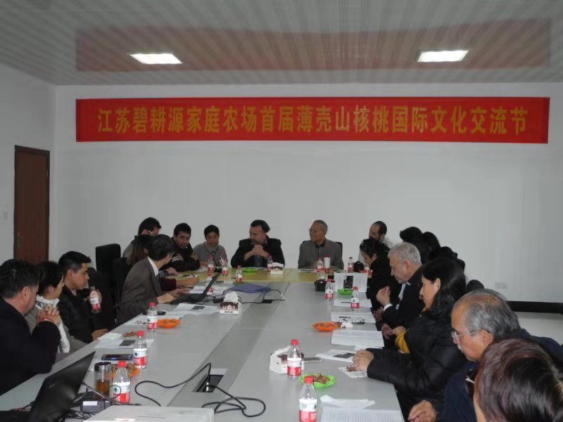 在江苏一带一路研究院院长、bevitor伟德国际1946吴志华教授主持的室内交流环节上,与会嘉宾分别聆听了江苏一带一路研究院研究员沙志平作的《中国碧根果产业概况与墨西哥合作机遇》的报告、吴志华教授作的《基于碧根果产业的中墨合作框架与倡议》报告和中国林业与环境促进会薄壳山核桃分会(筹)负责人、江苏碧根果家庭农场有限公司董事长巢文毅先生的《中国碧根果产业技术发展现状与合作展望》的介绍。后来,来宾们就涉及到的有关文化、贸易、教育等问题展开了气氛热烈的交流,并达成了进一步促进合作的共识。