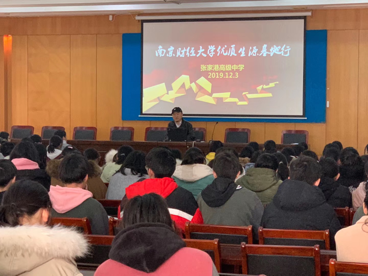 12月3日, bevitor伟德国际1946何卫东、焦媛、徐璐、翟兆宁四位老师和物流17级季一沁同学赴张家港高级中学、张家港沙洲中学给张家港高级中学、沙洲中学高三部考生开展宣讲。宣讲会上,何老师对张家港高级中学、沙洲中学为我校输送较多的优质生源表示感谢,并详细介绍了我校特色办学、科研能力、人才培养、升学考研情况、就业情况,让高三考生对财大有了更全面深入的认识;物流17级季一沁同学介绍了自己对大学学习、生活的体验让高三考生了解大学,对高考充满动力。在张家港高级中学宣讲会后,何卫东、焦媛、徐璐、翟兆宁与该校何校长、何主任做了进一步的交流,何校长介绍了该校的生源近况,深入了解我校专业设置,学校还邀请我校老师在学校期末考试之后给考生及家长做更进一步的专业介绍和高考填报咨询。