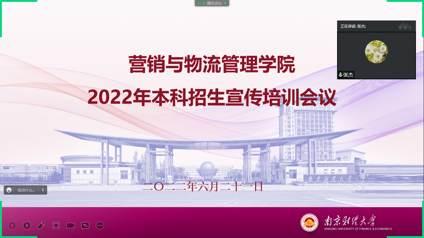 为进一步提升学院本科招生宣传工作水平,6月21日下午,我院通过腾讯会议平台线上举办2022年招生宣传培训指导会。由学院学生工作办公室主任仲巧林老师对招生宣传组进行培训,学院招生宣传老师、学生志愿者参加培训,党委副书记张杰老师参加会议并讲话。