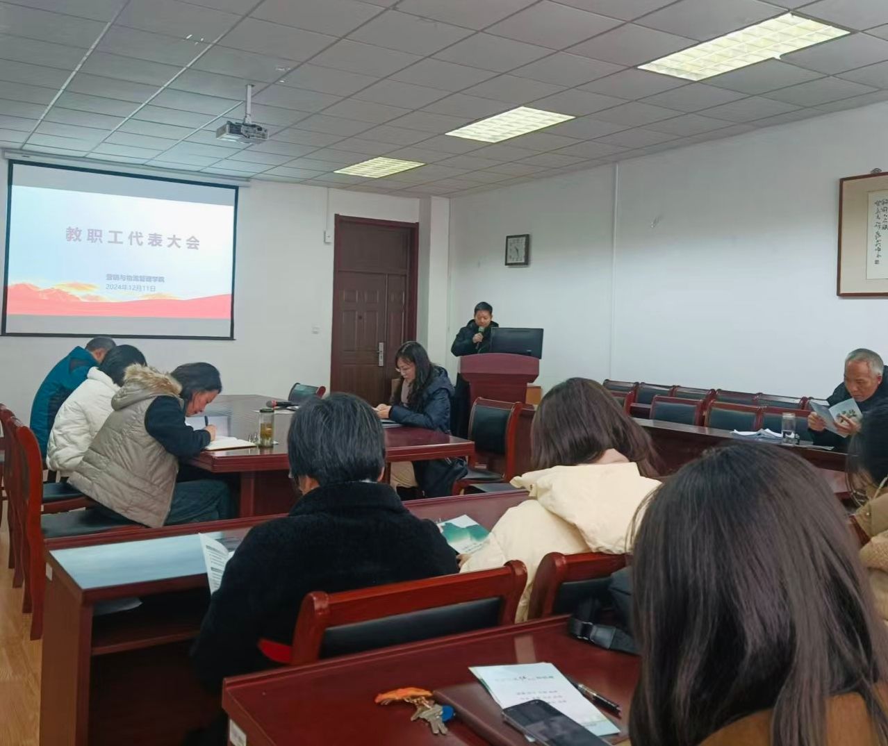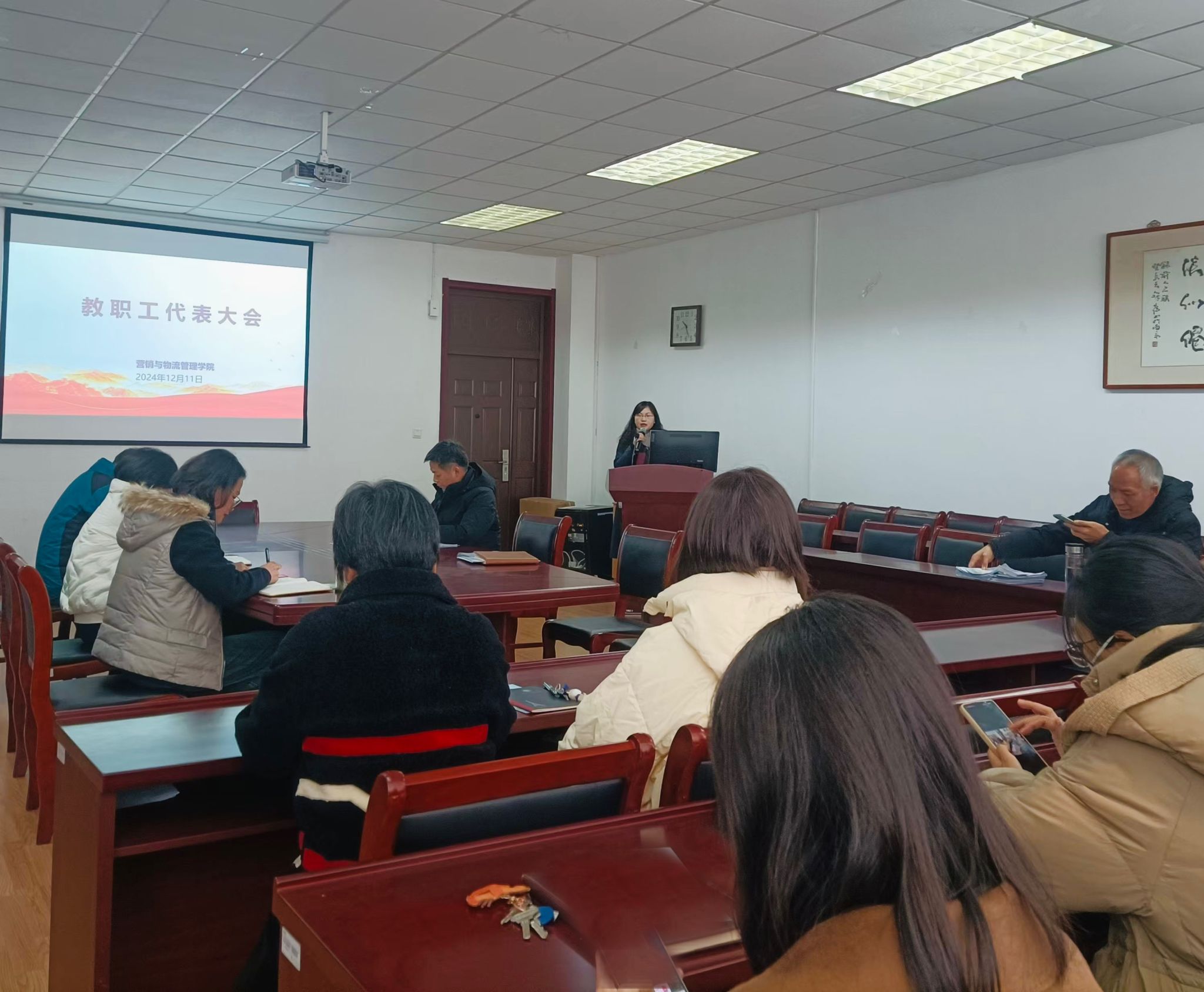 12月11日下午,我院在德业楼407召开学院2024年度教职工代表大会。学院全体教职工参加了会议,会议由学院党委书记刘颖主持。
