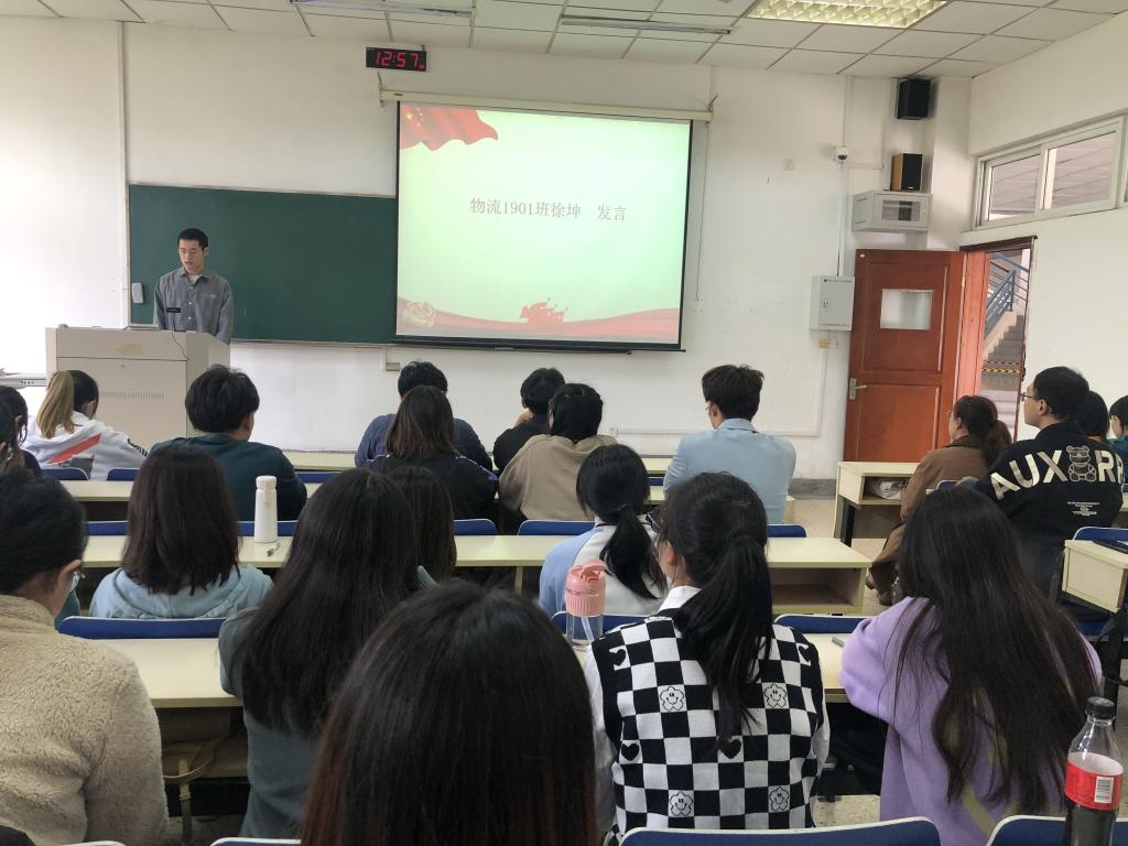 本次党课班长、物流1901班徐坤同学发言,他集中表达了同学们对上党课的渴望,表示一定认真学习,遵守纪律,细心领悟党的各项知识,积极参加组织活动,争取早日成为党组织的一份子。