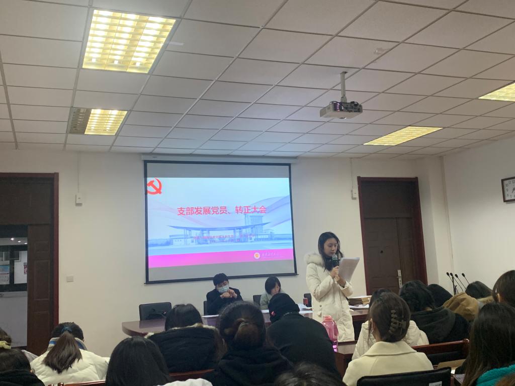 仲巧林老师汇报了应到党员人数及实到党员人数,符合开会人数要求,宣布可以开会。在庄严的气氛中,全体奏唱《国歌》。会议第一项议程为吸收中共预备党员。31名党的发展对象逐一阐述了个人入党动机和对党的认识,宣读入党志愿,汇报对党的认识、入党动机、本人履历、家庭和主要社会关系情况以及需要向党组织说明的问题,然后仲巧林老师向大会通报了组内各位发展对象的政治审查结果,公示情况,然后与会党员充分讨论并发表意见,认为各位发展对象符合入党条件,同意吸收其为预备党员。随后支部正式党员进行了投票表决,31名同学全票发展为预备党员并作了表态发言。仲巧林老师对他们的加入表示热烈的祝贺,并勉励各位预备党员在学习生活中起到模范带头作用。