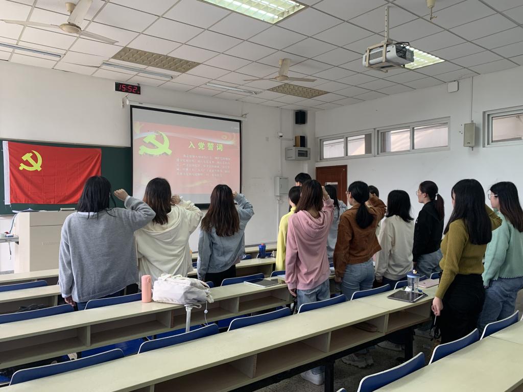 最后,在党支部书记肖密的带领下本科生第二党支部全体党员重温了入党誓词。