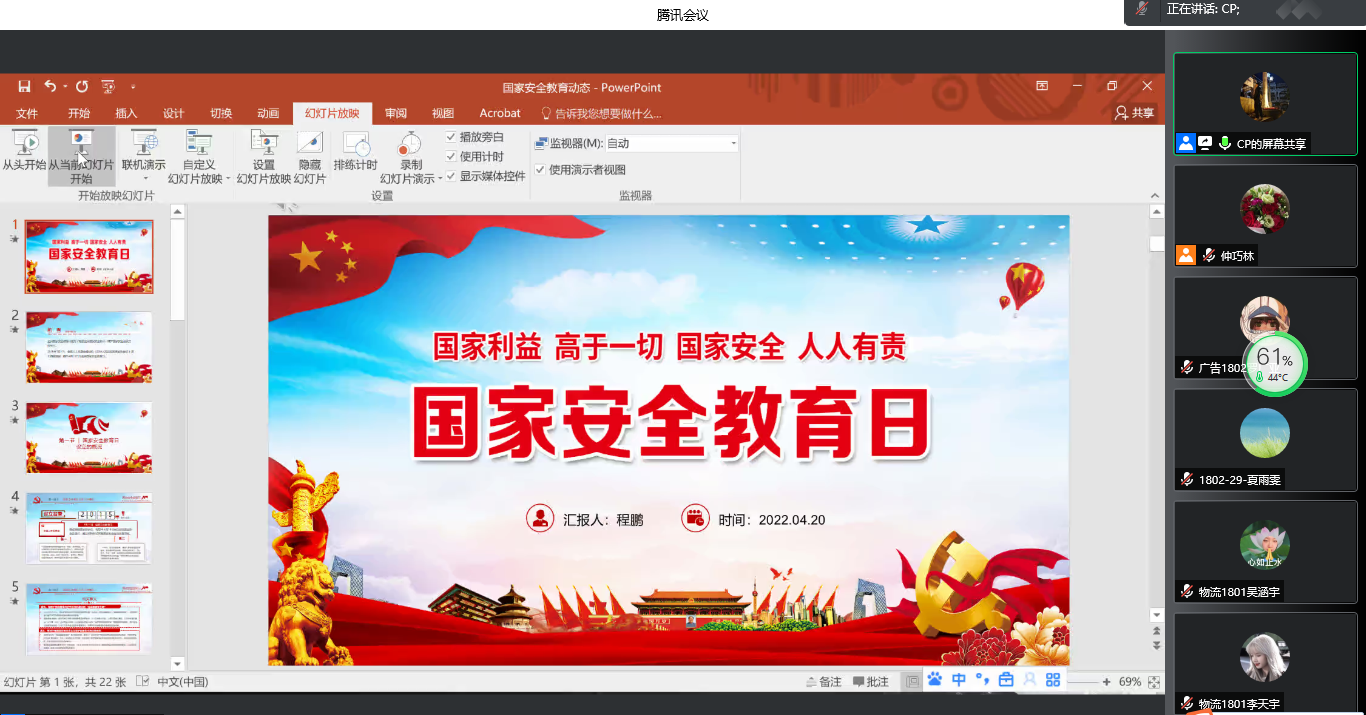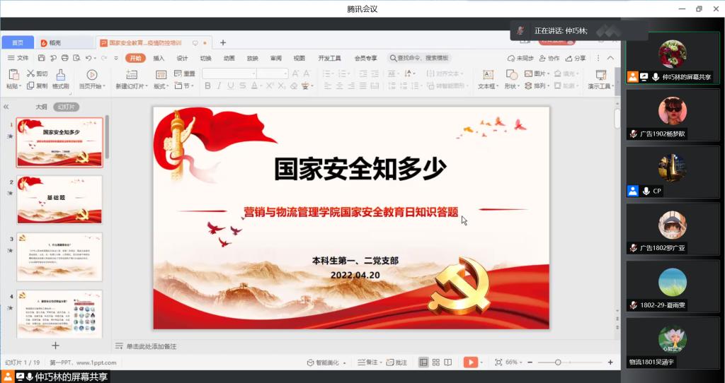 为加强对学生党员的国家安全教育,树立并强化国家安全意识,4月20日,bevitor伟德国际1946本科生第一、二党支部通过腾讯会议开展“全民国家安全教育”微党课。邀请本科生第一党支部联系领导、学院院长助理程鹏老师主讲。本科生第一党支部书记仲巧林老师,本科生第二党支部书记肖密老师及支部全体党员参加。