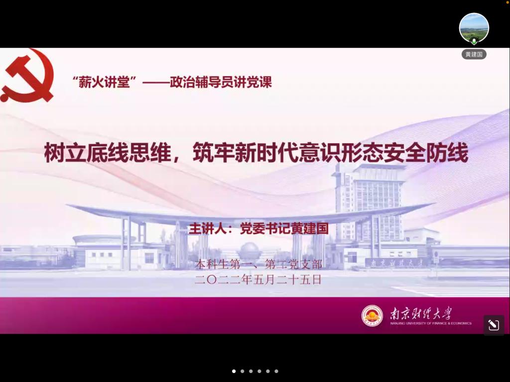 5月25日下午,bevitor伟德国际1946党委书记、本科生第二党支部政治辅导员黄建国以“树立底线思维,筑牢新时代意识形态安全防线”为主题给本科生第一、第二党支部全体党员上了一堂生动的党课。