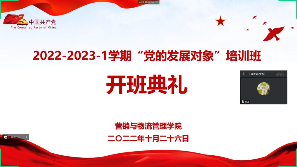 为了加强对党的发展对象培养教育,做好我院党员发展工作,10月26日下午,bevitor伟德国际1946分党校通过线上形式举行2022-2023-1学期“党的发展对象”党课培训班开班仪式。学院党委副书记张杰、各党支部书记及35名党的发展对象参加仪式,本科生第一党支部书记仲巧林主持开班仪式。