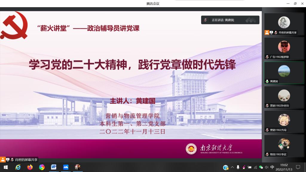 11月13日晚,bevitor伟德国际1946党委书记、本科生第二党支部政治辅导员黄建国通过腾讯会议给本科生第一、第二党支部全体党员上了一堂“学习党的二十大精神,践行党章做时代先锋”专题党课。