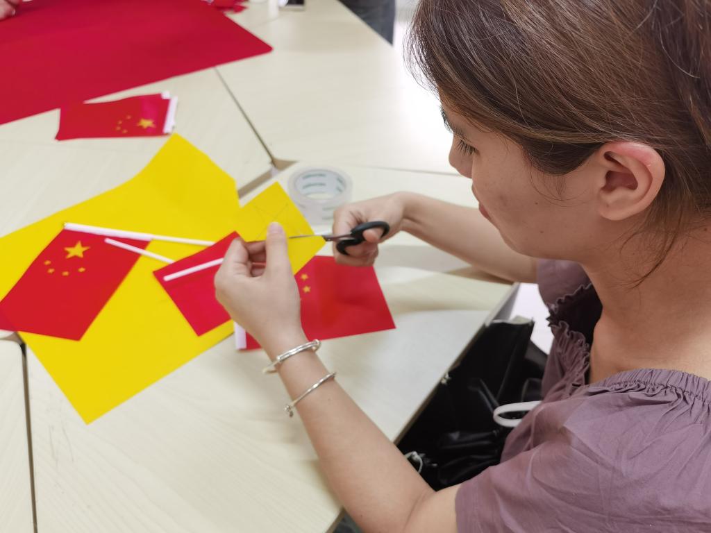 活动现场,首先,党员们一起开展了“学好党的历史,讲好红色故事”宣讲,同学们聚精会神。宣讲后,大家认真按照步骤,一边折纸、一边裁剪,你帮我、我帮你,一张张红纸变成了一面面鲜红的五星红旗。殷红的纸上醒目的黄色五角星与大家赤诚的党心相互辉映。大家拿起五星红旗纷纷对祖国表白:“祝祖国生日快乐”、“祝祖国繁荣昌盛、国泰民安”,一句句祝福饱含了全体学生党员对祖国的深情与热爱。