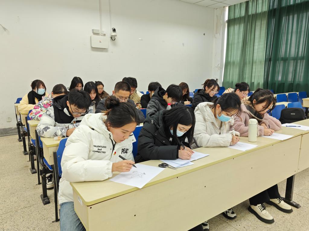绘制和平鸽活动环节,学生党员们用一支笔一张白纸,从头颈的描绘到羽翼的丰满,流畅的线条跃然纸上,最后的一笔点在和平鸽的眼睛上,由此,叼着橄榄枝的和平鸽在一笔一画下栩栩如生。党员们在绘制的和平鸽旁写上祈愿和平的词句并签名展示,“珍爱和平,吾辈自强”、“守望和平,国泰民安”这是他们送出的美好祈愿。
