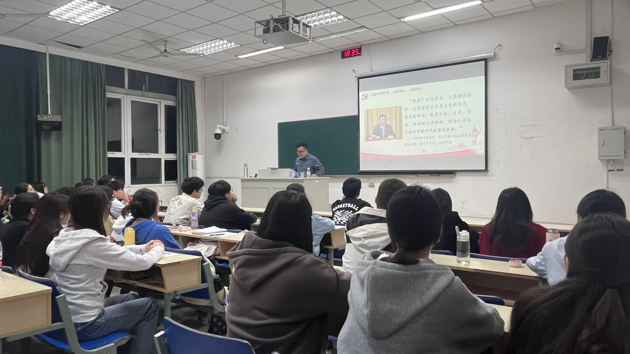 党课上,陈涛老师结合工作实际,运用丰富的志愿服务典型事例,从奉献、友爱、互助、进步四个方面向同学们深刻全面地阐述了志愿服务的精神内涵。他强调,志愿服务精神作为现代社会文明进步的重要标志,其核心体现为无私奉献、乐于助人、团结协作和社会责任感,现在越来越多的人投身于志愿服务,我们青年大学生群体是其中一支不可忽视的重要力量。