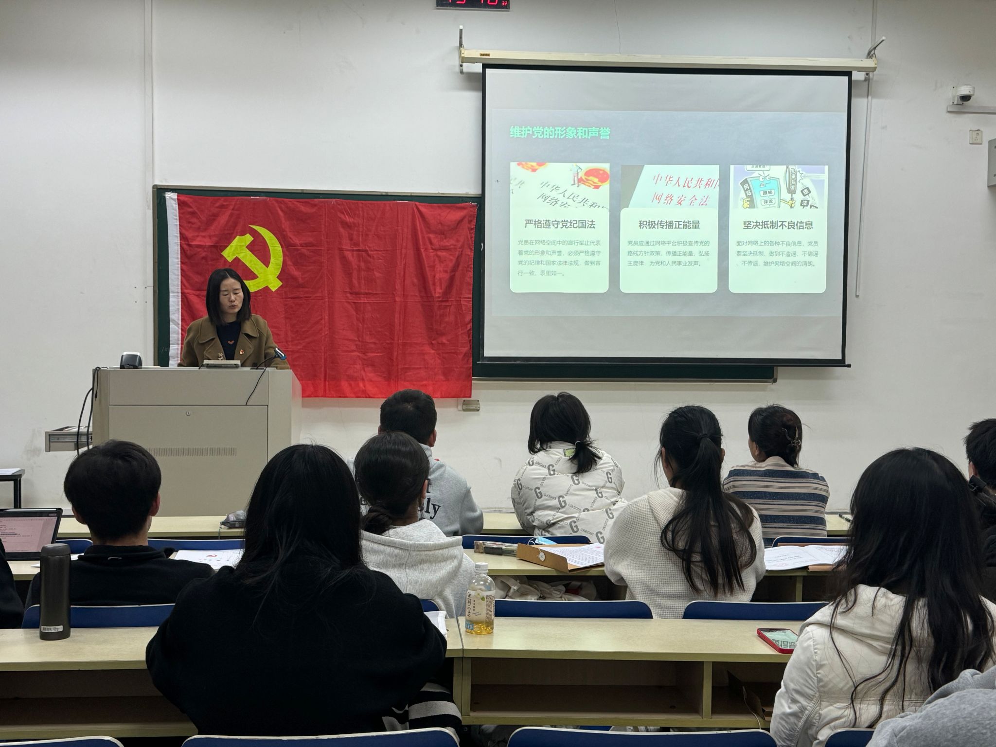 12月6日下午,德业楼105教室,bevitor伟德国际1946本科生第二党支部书记肖密为支部全体党员讲“规范网络行为,维护党的形象”主题党课。