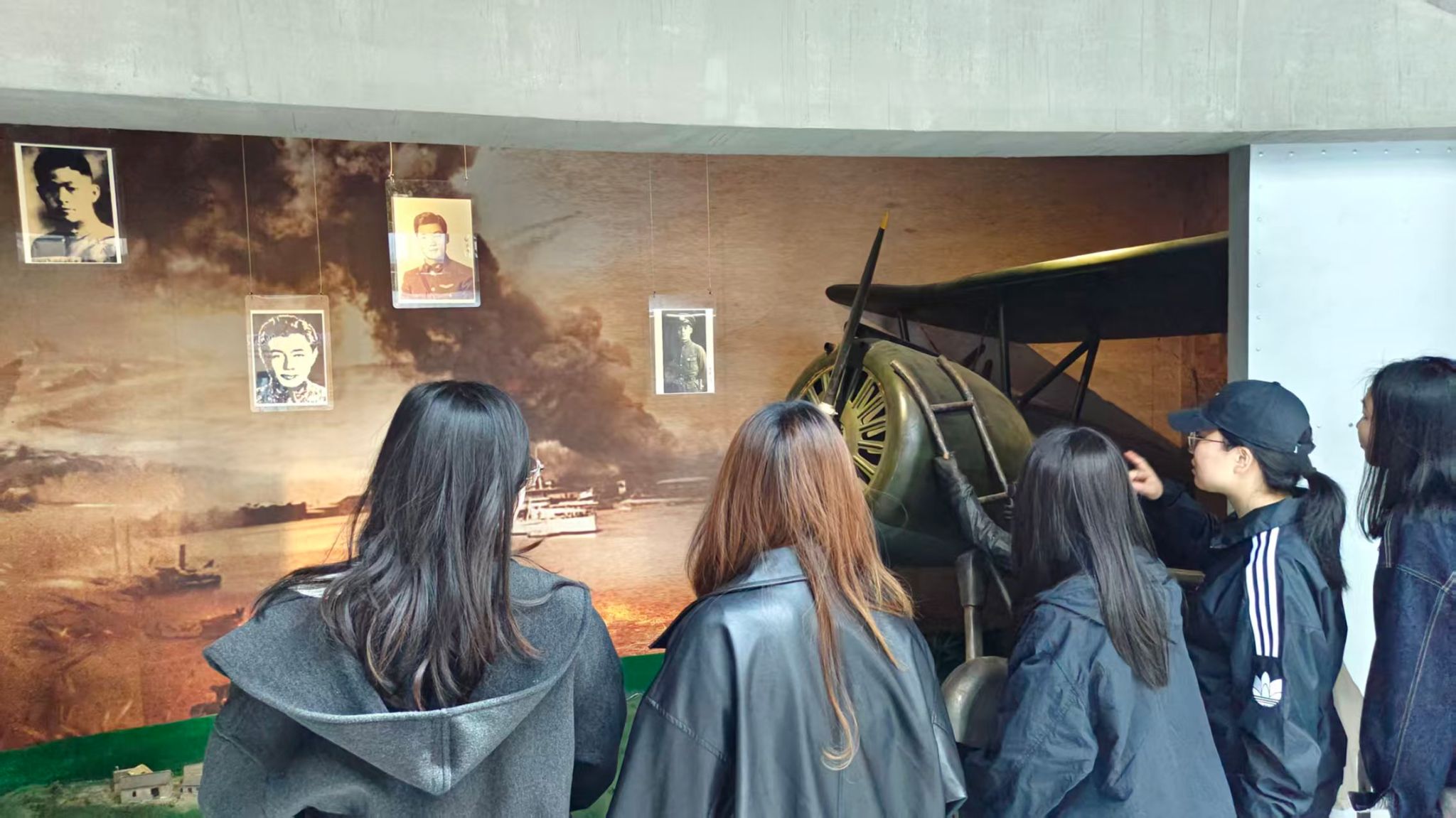 在庄严肃穆的氛围中,同学们怀着崇敬之心有序参观,借助馆内珍贵史料、革命文物及沉浸式场景,重温航空英烈在抗战时期浴血奋战、保家卫国的壮阔历史。展厅播放的抗战主题影像,生动再现英烈们不畏强敌、向死而生的英雄气概,让同学们深受触动。