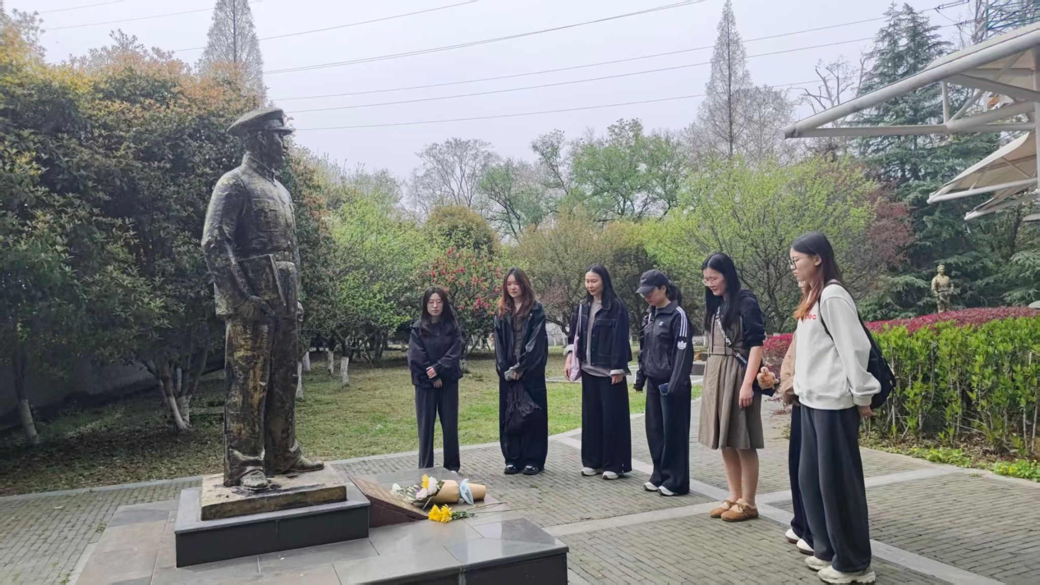 参观结束后,学生代表向烈士雕像敬献鲜花,全体静立默哀,以此寄托对先烈的深切哀思与崇高敬意。