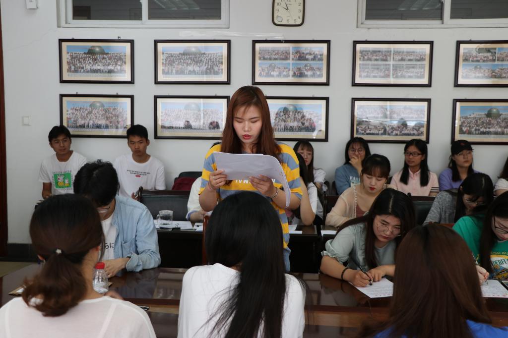 全体起立奏唱国歌后,会议第一项议程为接受预备党员环节。本科生学生党支部书记仲巧林汇报了应到党员人数及实到党员人数,符合开会人数要求,宣布可以开会。在庄严的气氛中,奏响《国际歌》,参会全体人员起立对党旗行注目礼。之后,对发展对象分别宣读入党志愿,汇报对党的认识、入党动机、本人履历、家庭和主要社会关系情况以及需要向党组织说明的问题,然后仲巧林书记向大会通报了组内各位发展对象的政治审查结果,公示情况,然后与会党员充分讨论并发表意见,认为各位发展对象符合入党条件,同意吸收其为预备党员。然后,依次进行了无记名投票。最后,经过汇总投票结果,大会一致同意接收葛彧等21名发展对象为预备党员的决议,各发展对象并作了表态发言。