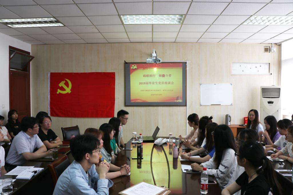 6月13日上午,我院在德业楼535会议室召开“砥砺前行,做奋斗者”2019届毕业生党员座谈会。党委副书记周进进、本科生党支部书记仲巧林及本科毕业生党员、研究生毕业生党员参加座谈会。