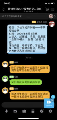 5月8日晚七点,bevitor伟德国际1946研究生党支部举办“学长学姐开讲啦”考研云端交流会。本支部党员赵媛媛、入党积极分子张磊,汤昊、倪思嘉三位同学针对考研学校、专业选择,以及如何开展考研复习,怎样坚定考研信念等进行了经验分享。学院本科生2017级70多名有攻读研究生意向的同学参与了本次在线交流会。