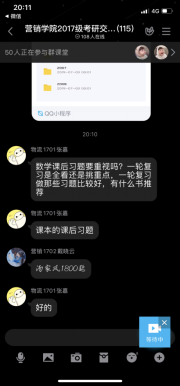 接着,在交流互动环节,本科生2017级同学踊跃提问,表现出极大的热情和求知欲,4位研究生学长学姐也就同学们提出来的问题作出了耐心的解答,并给同学们分享了一些优质的学习参考资料。同学们纷纷表示分享的内容都是十分充实的干货,各方面的收获都很多,自身对于未来复习的规划也更加的清晰了。