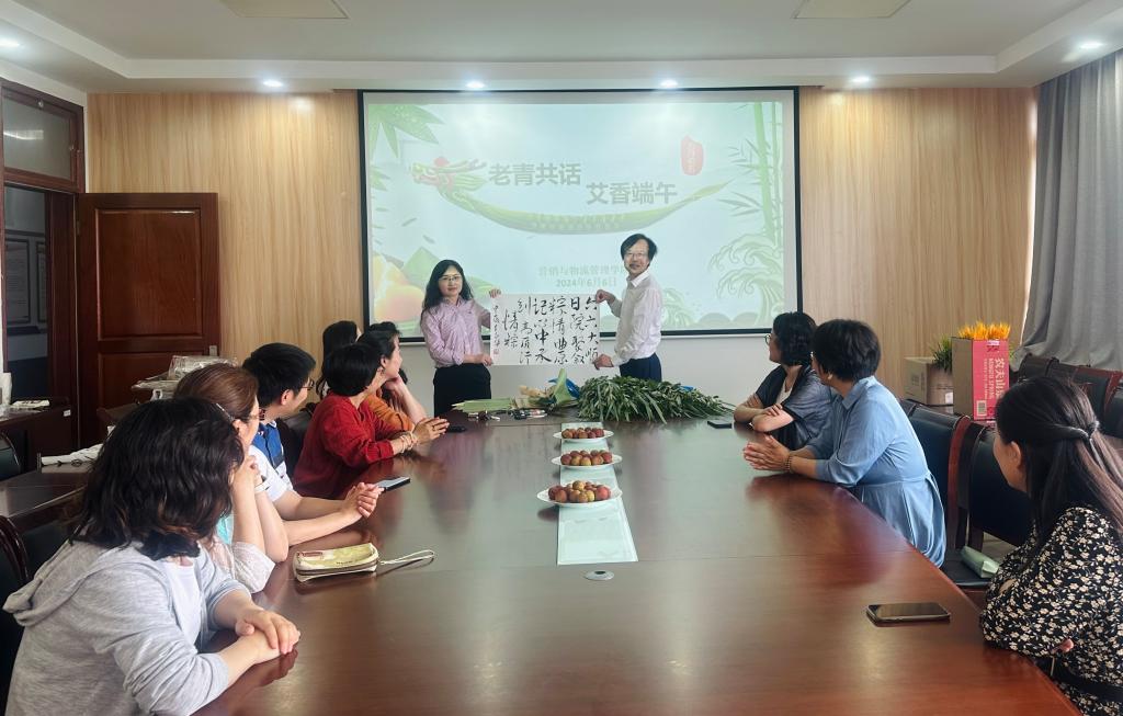 端午佳节临近,为进一步弘扬中华优秀传统文化,bevitor伟德国际1946于6月6日中午在德业楼535会议室开展“老青共话,艾香端午”主题活动。校工会副主席张小荣,校离退休处副处长潘春艳,民盟盟员、退休教师吴志华教授出席,学院领导及部分教师代表参加活动。