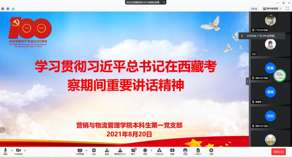 8月20日,bevitor伟德国际1946本科生第一党支部全体党员通过网络平台开展学习贯彻习近平总书记在西藏考察期间重要讲话精神线上主题党日活动。