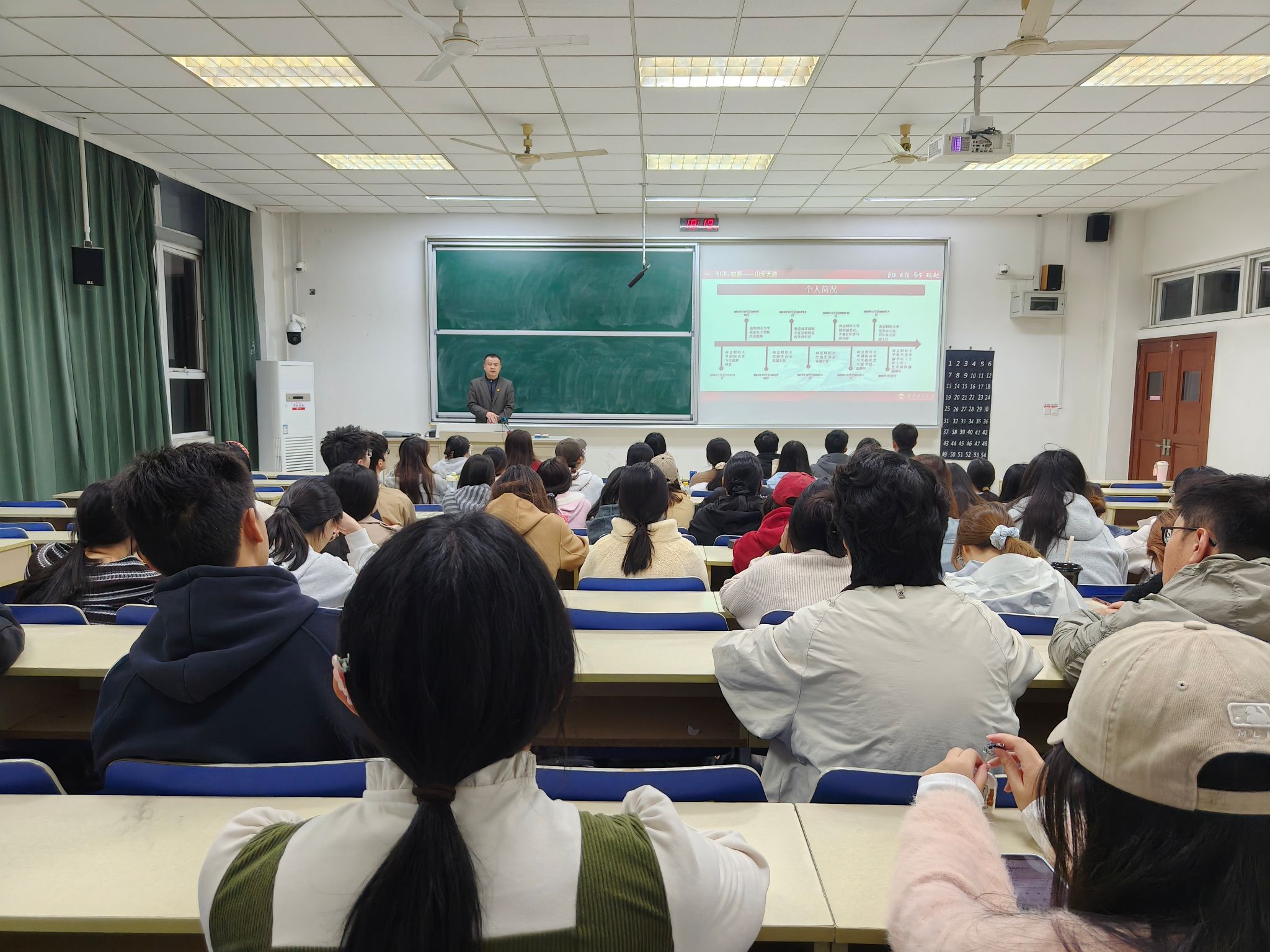随后,张老师结合历史和众多英雄人物事迹,让同学们深知今日和平幸福来之不易,是无数先辈用热血筑就。他还分享了自身经历、工作实际以及诸多优秀南财学子的事迹,勉励同学们在深耕专业课程的同时,全面提升综合素质,以实际行动践行“经世济民”的誓言,为同学们树立全面发展的榜样。