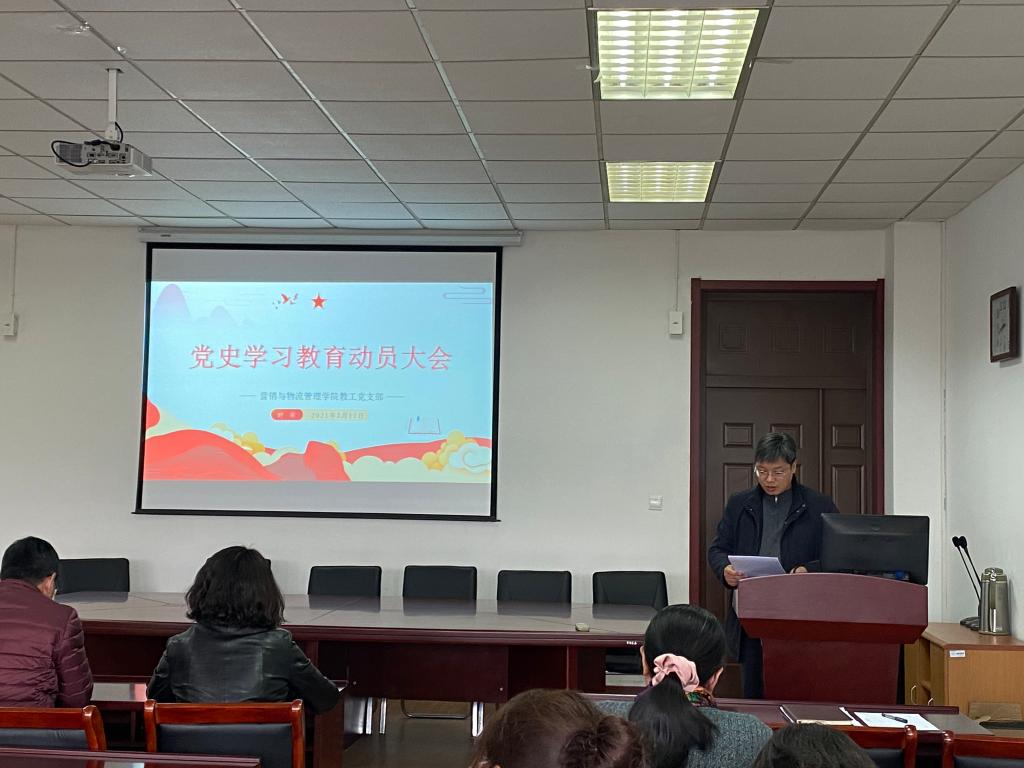 3月17日下午,营销与物流管理学院在仙林校区德业楼407会议室召开党史学习教育动员会议。学院全体教职工参加会议。