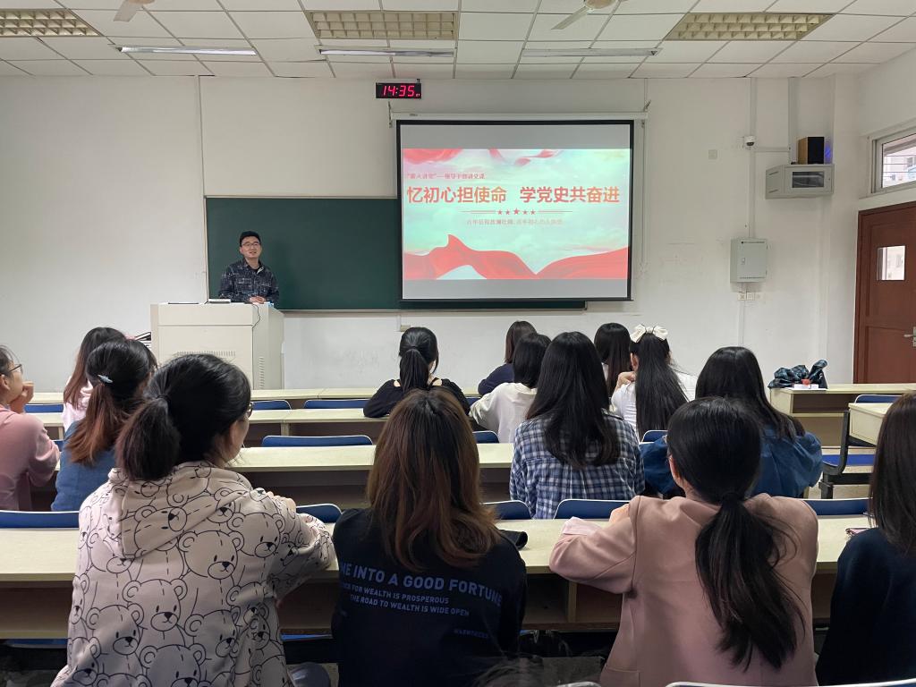 5月12日,bevitor伟德国际1946本科生第一党支部于德业楼108教室开展党史学习教育,邀请学院院长助理程鹏做《忆初心担使命,学党史共奋进》主题党课 ,支部全体党员参加学习。