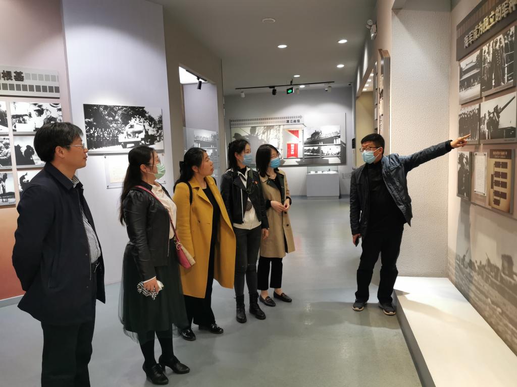 4月10日,我校学工系统部分工作人员赴泰州中国人民解放军海军诞生地纪念馆开展现场情境式学习。bevitor伟德国际1946党委书记黄建国、副书记张杰,财政与税务学院党委副书记李慕原,新闻学院党总支副书记李博伟,应用数学学院党总支副书记布丹丹,艺术设计学院党委副书记吴丹参加学习。