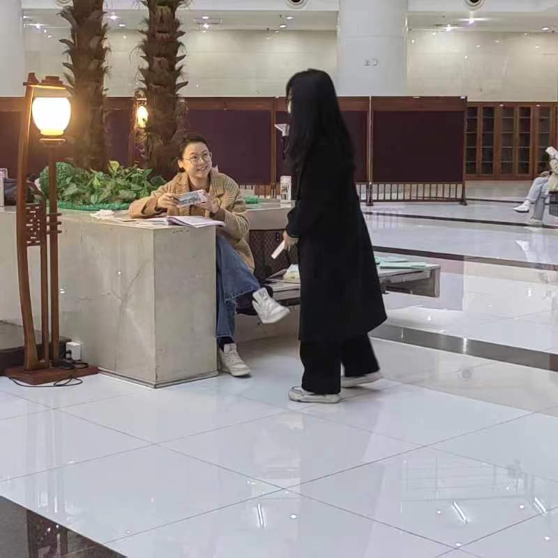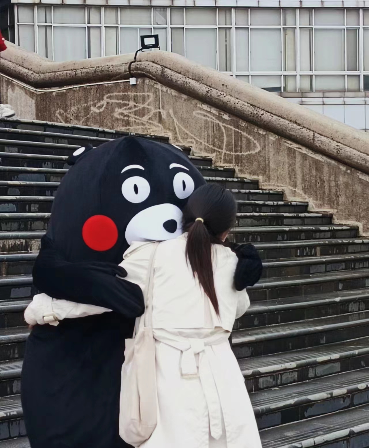 活动分为自由拥抱、分发明信片、问候语交流三个部分,图书馆外进馆同学们看到手持可自由拥抱标牌身穿熊本熊玩具服的志愿者纷纷上前拥抱以缓解自己的学习考研压力,图书馆内志愿者们向备战考研的学生分发祝福明信片,给考研学生加油打气,祝福他们实现梦想,顺利上岸。结束后同学们在教室一起交流了家乡的问候语,不仅促进了学生之间的交流,而且拓宽了学生对地域文化的了解。