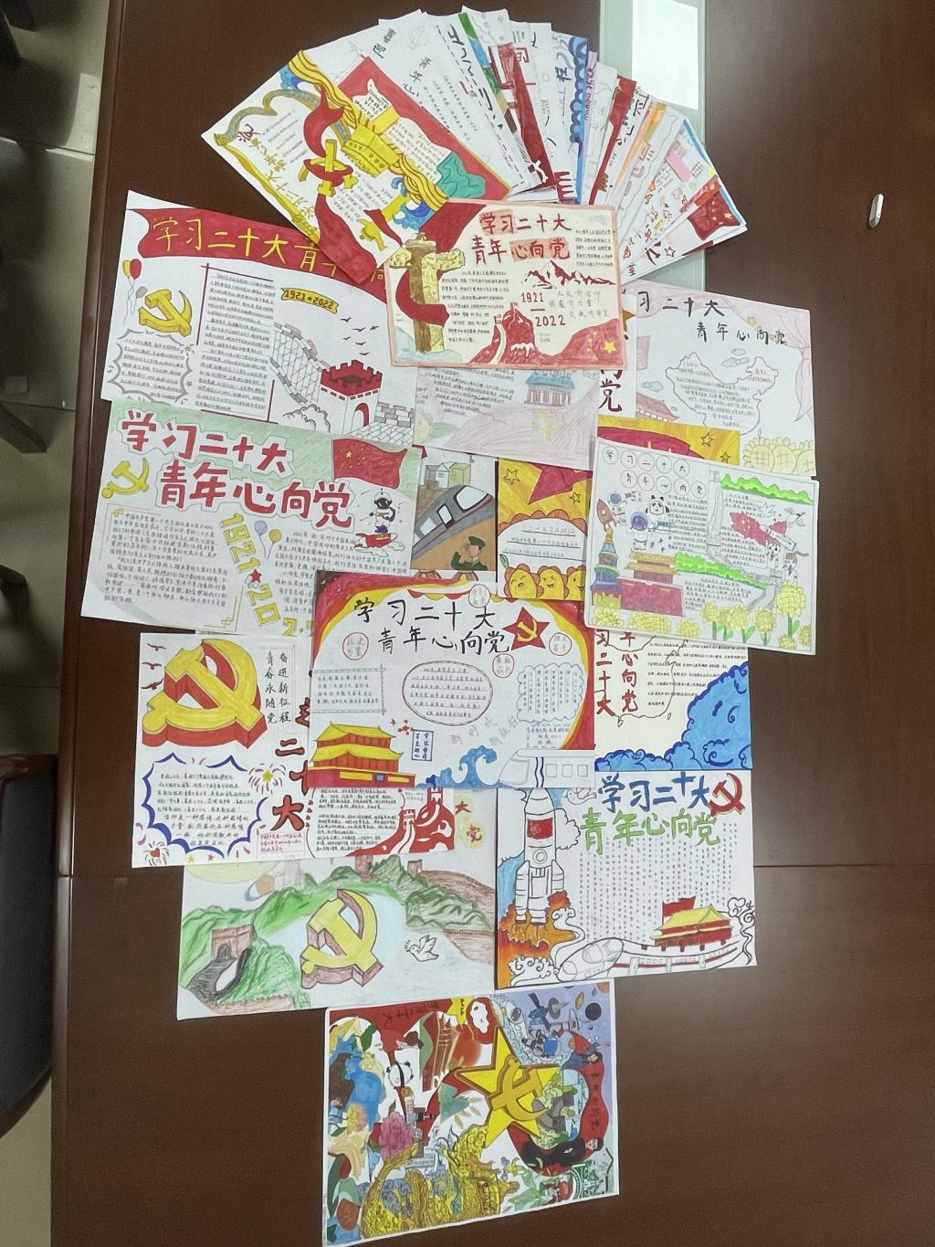 此次手抄报比赛紧紧围绕“团结铸同心,共学二十大”为主题,活动前期,同学们认真学习了党的第二十次全国代表大会报告,积极搜集素材,精心构思,用心创作,绘制了一幅幅主题鲜明、内容丰富、图文并茂的手抄报,充分展示了同学们认真学习中国共产党的第二十次全国代表大会精神的成果。