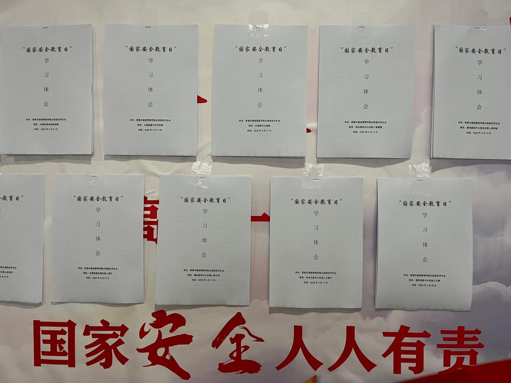 4月22日,学院分团委书记徐辉召集分团委及学生会进行了国家安全教育日的线上动员,组织观看了国家安全教育视频,以学生干部的国家安全教育为抓手,进一步推动全院学生的国家安全教育的贯彻落实,要求每名学生完成一篇心得体会,并将自己和学生干部的心得体会进行集中张贴展示。