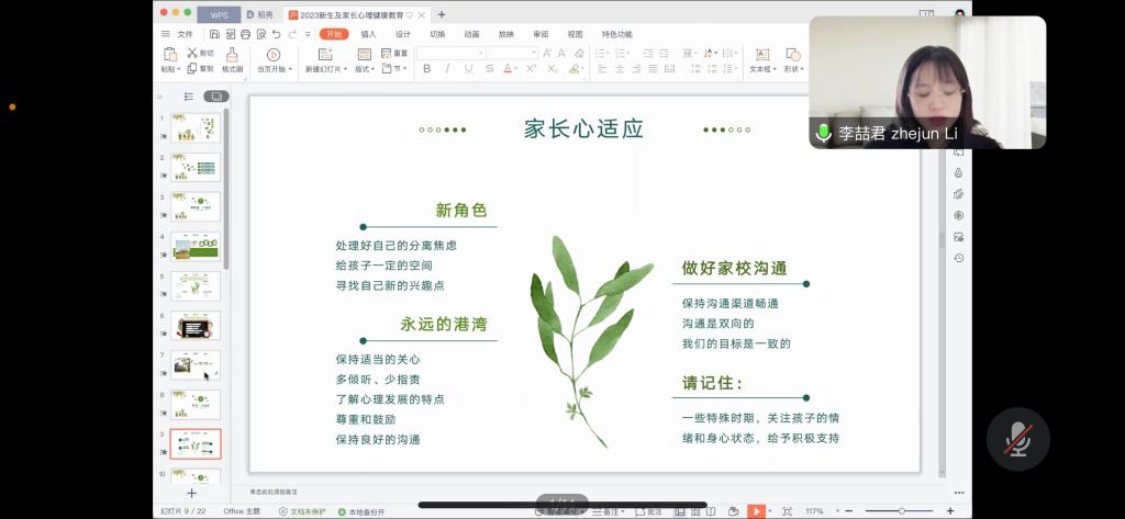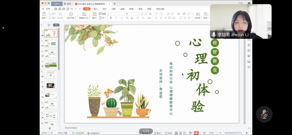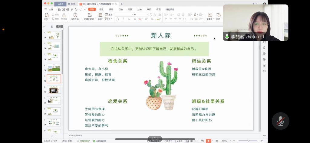 为帮助2023级新生更好更快适应大学生活,8月31日下午,bevitor伟德国际1946“萤光”生涯工作室邀请校心理健康教育中心李喆君老师作“心理初体验——新生如何适应大学生活”线上讲座,学院2023级本科生、研究生及家长参加讲座。