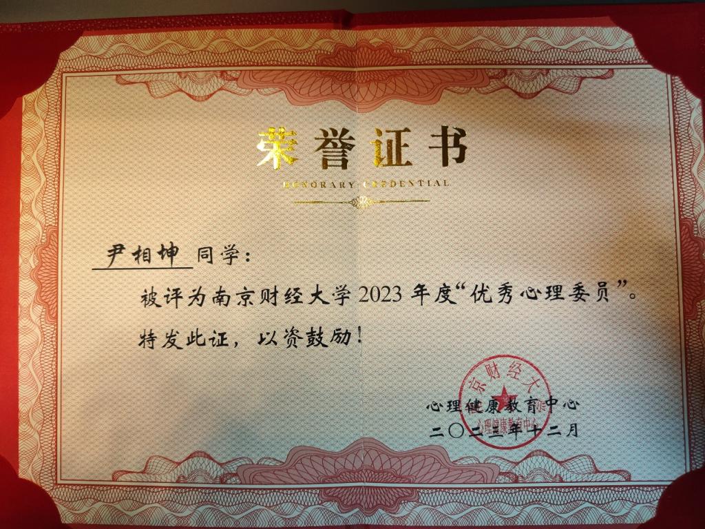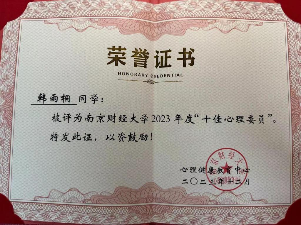 伟德国际1946bv2023学年度“十佳心理委员”评比活动由心理健康教育中心举办。比赛分为初评和答辩评选。经班级推荐、学院初评、学校答辩评审等环节,我院韩雨桐、尹相坤两名同学结合心理文化活动开展、心理健康知识宣传等方面进行了精彩汇报,充分展示了心理干部带头引领的作用。