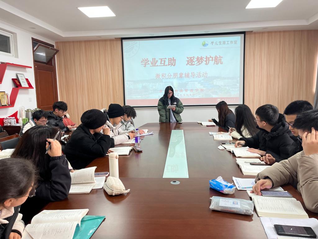 3月1日下午,我院“萤光”生涯工作室于德业楼539会议室举办“学业互助,逐梦护航”微积分朋辈辅导活动。此次活动由物流2301班魏如意、黄学杰,营销2301班石小雨、唐艺,营销2302班曹俊杰五位微积分成绩优异的同学作为“小老师”,旨在对微积分基础欠缺的同学进行基础巩固与强化辅导,同时分享交流学习经验与方法。我院大一年级部分同学参加活动。