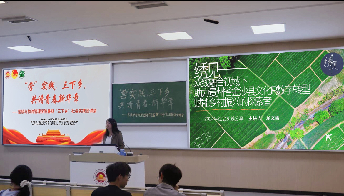 为提升同学们对暑期社会实践的理解,调动同学们积极参与热情,4月12日下午,我院于博观楼202教室开展2024年“营实践,三下乡,共谱青春新华章”暑期社会实践宣讲会。学院团委书记徐璐老师,社会实践指导老师殷漫漫,校大学生科学协会主席、营销2102班刘凯,校团委青年媒体中心负责人李光耀,2023年暑期社会实践优秀代表龙文雪,学院志愿者服务部负责人闫熙曼及2023级全体本科生参加活动。