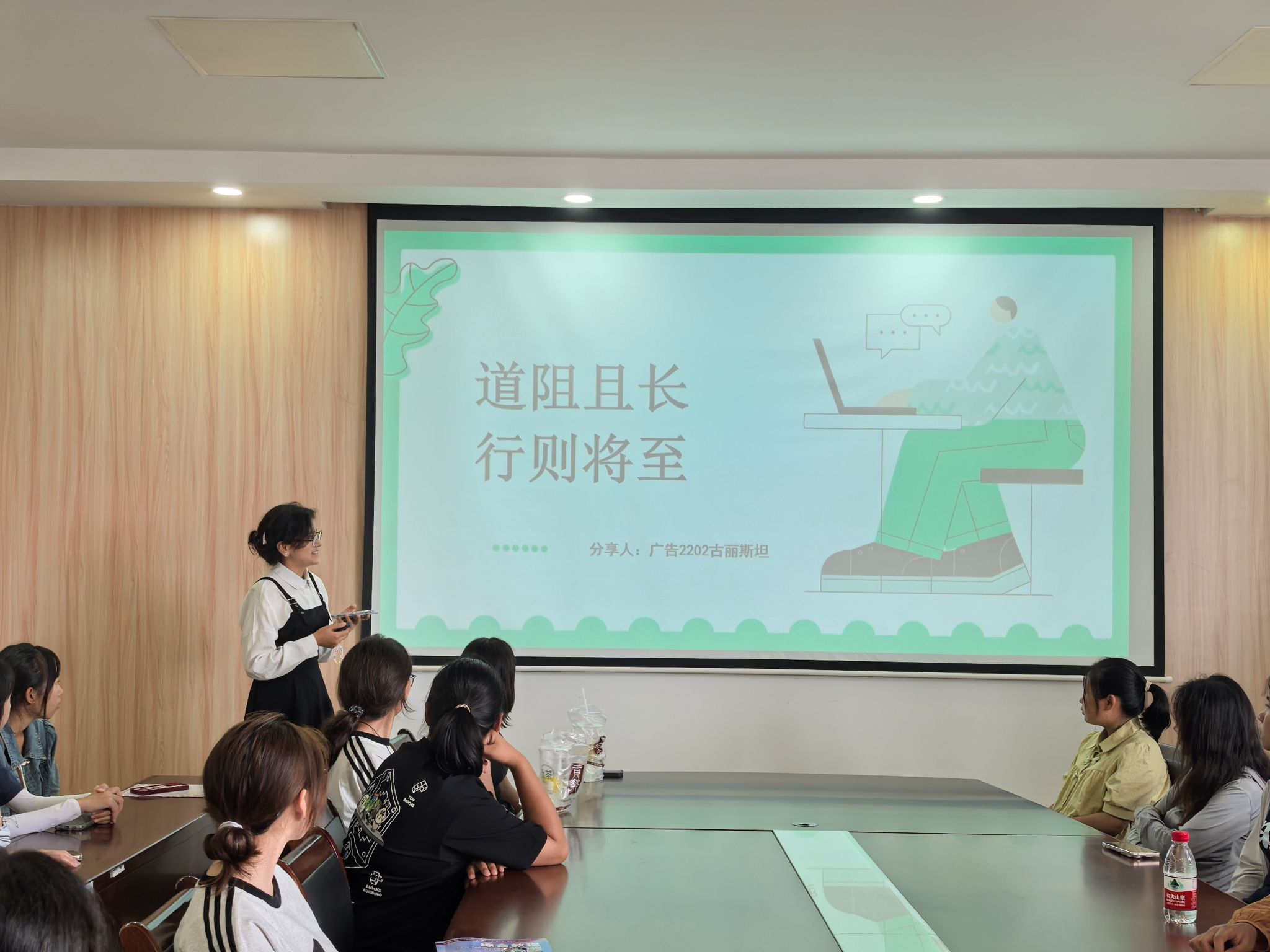 分享会邀请了4位高年级民族学生代表发言,他们结合自身实际分享了在大学的见闻、学习生活以及未来计划。广告2201班古丽斯坦介绍了参与社团活动及所获得的经验,并结合自己学习情况提出了学习建议,鼓励新生积极行动做好学业规划。物流2202班的古丽则巴以“热情与真诚”带来了一场别开生面的经验分享会,告诫学弟学妹们,大学绝非松懈之地,应抓紧时间提升综合能力。国家励志奖学金获得者、营销2201郝盈从学习、生活和未来规划三方面向同学们展示了自己的经验,助力新生在大学收获满意的成绩。物流2301班布萨日古丽分享了在大学的成长轨迹,鼓励同学们要不断开拓视野,走出舒适圈,在社会实践中提升专业能力。